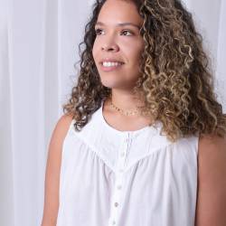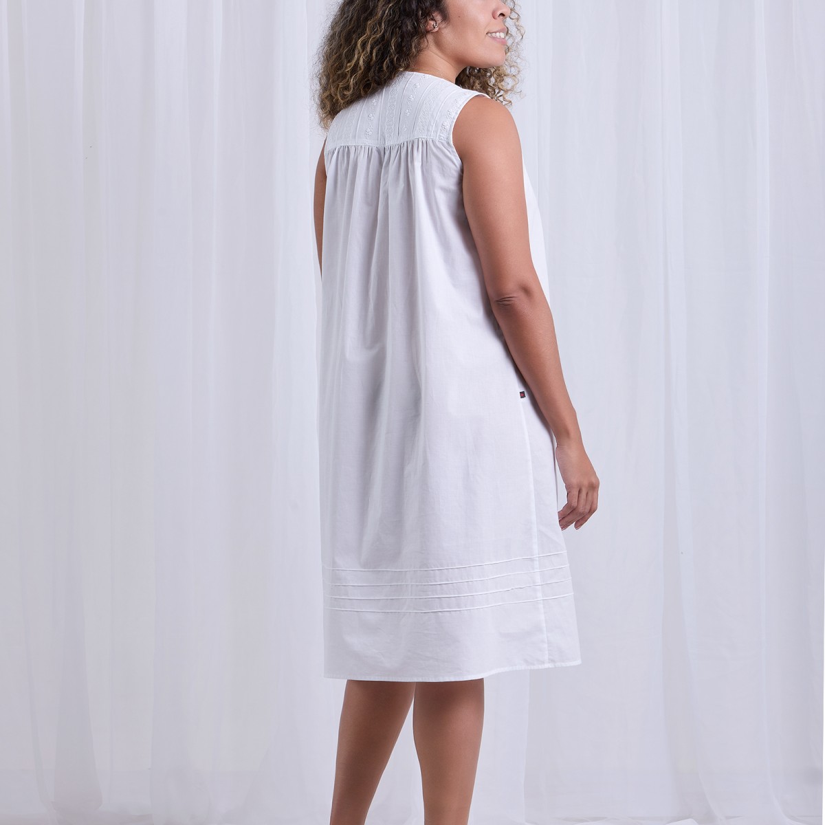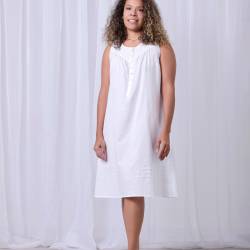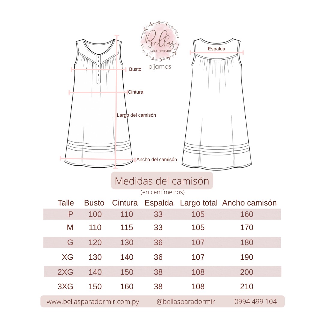 Camisón estilo romántico, abotonado hasta la cintura, 100% algodón, con detalles bordados en el pecho y espalda, largo hasta debajo de la rodilla. La tela es batista de algodón (la tela no es elastizada). El camisón es amplio y muy cómodo.