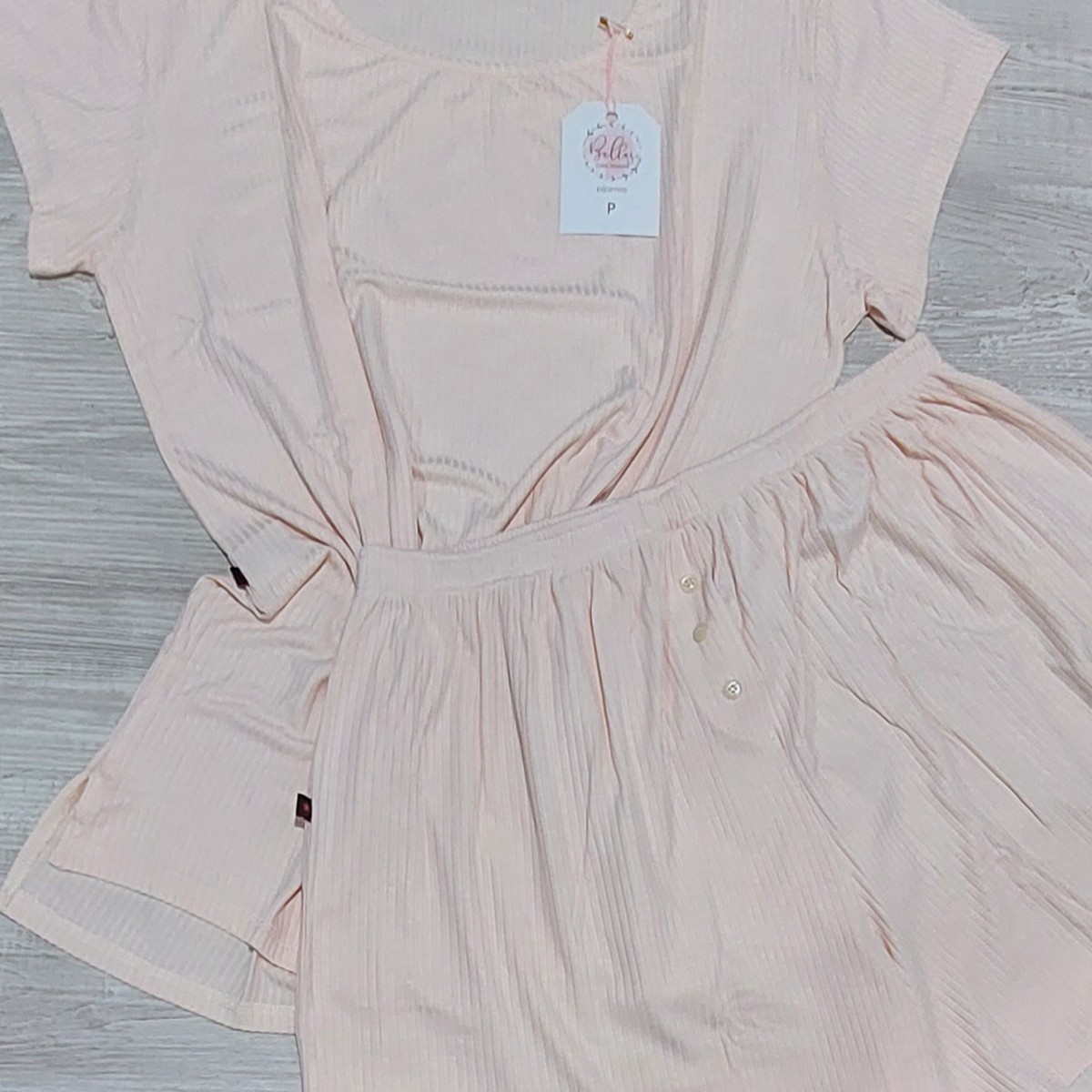 Conjunto de 3 piezas: incluye 1 pantalón largo elastizado, 1 short elastizado y 1 remera con mini-manga. La tela de este hermoso conjunto blanco es morley tacto algodón (la tela es muy suave, agradable al tacto y bien elastizada). El short y el pantalón tienen una mini-bragueta decorativa.