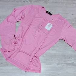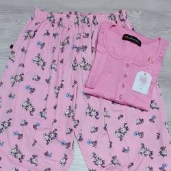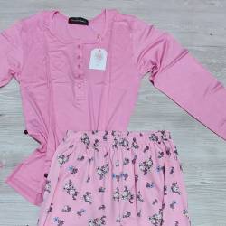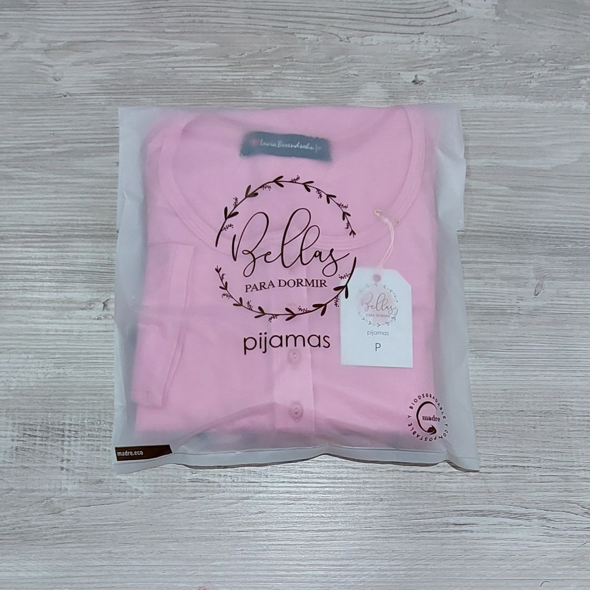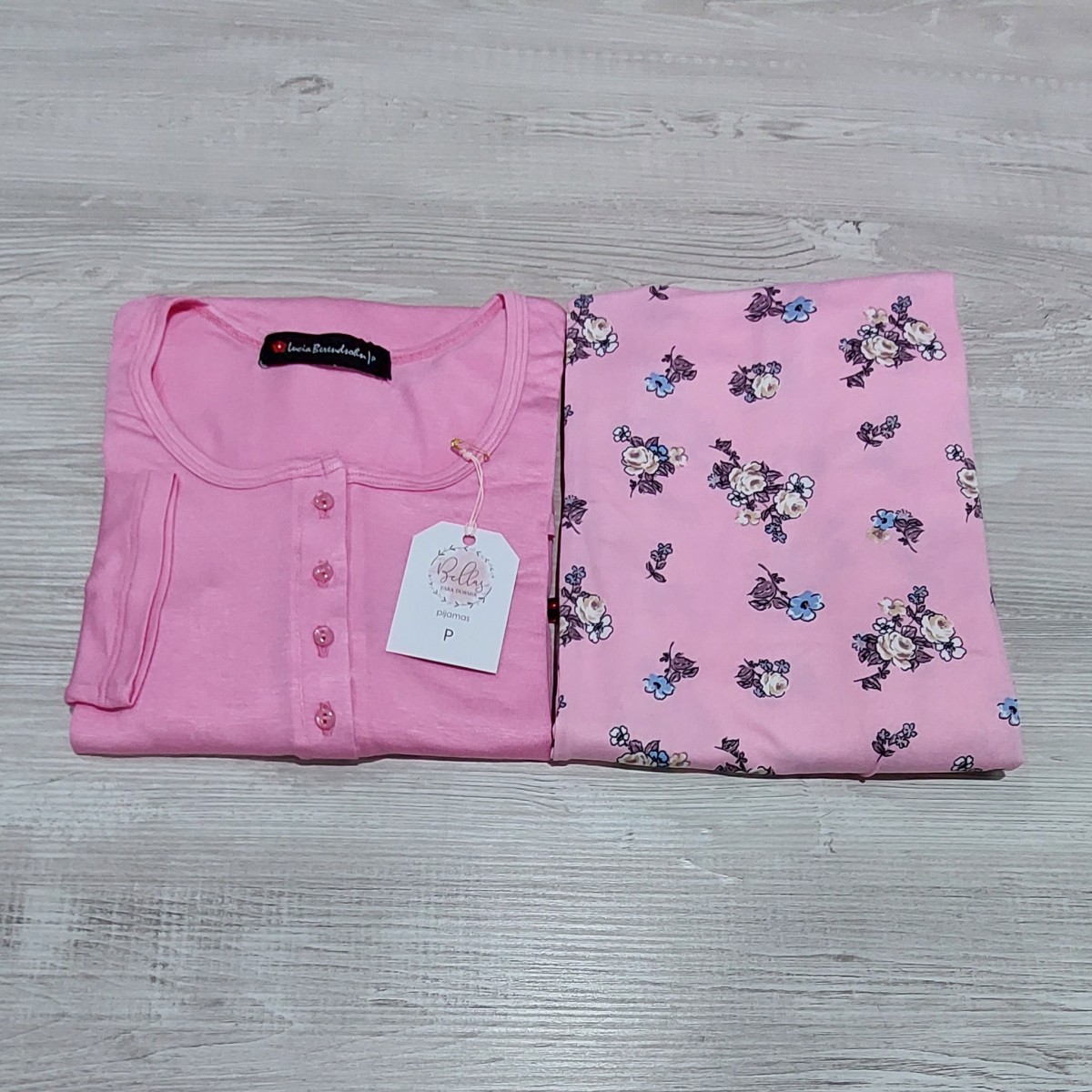 Conjunto de pantalón largo y remera mangas largas abotonada hasta el pecho. La tela del pantalón es de piel de durazno (una tela elastizada, muy suave y agradable al tacto). La remera es de viscosa de algodón (tela elastizada y muuuy suavecita)