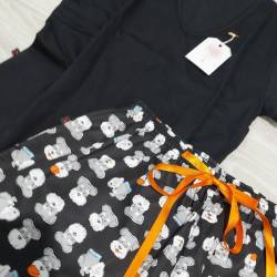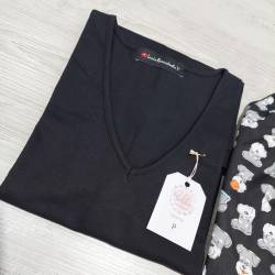 Conjunto 100% algodón! Incluye una remera con escote V y minimangas (la tela es semi-elastizada) y un short con lazo decorativo al tono (la tela del short no es elastizada). Apto para alérgicas al poliester.