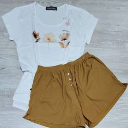 Conjunto de 3 piezas: Incluye 1 pantalón largo elastizado, 1 short elastizado y una remera con minimangas. La tela del short y del pantalón es morley tacto algodón (es una tela fresca, suave y bien elastizada) La remera es de piel de durazno finita y fresca (es bien elastizada). El short y el pantalón llevan una mini-bragueta decorativa.