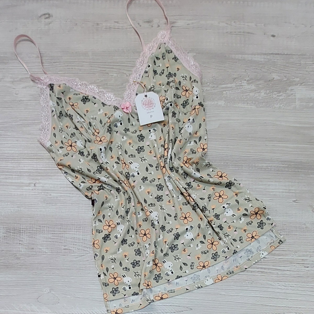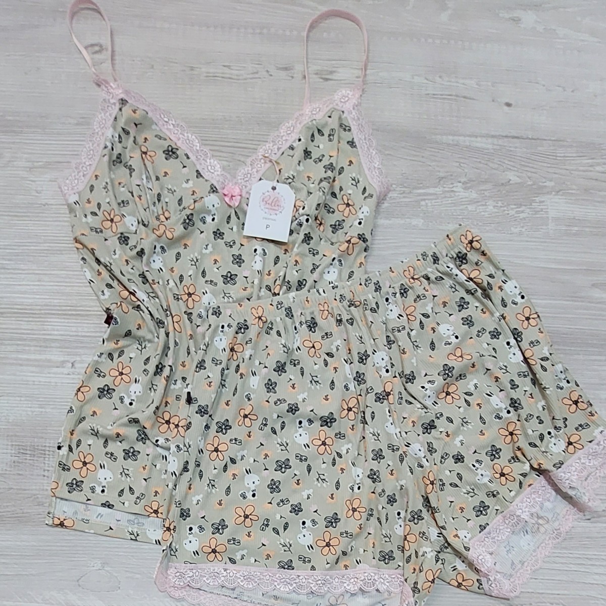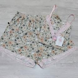 Conjunto de short y solerita con detalles de encaje y tirantes regulables. La tela es bien elastizada, suavecita y fresquita. Muy agradable al tacto. La tela es morley tacto algodón.