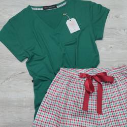 Conjunto 100% algodón. Conjunto de short y remera mangas cortas con escote V. El short lleva un lazo al tono.