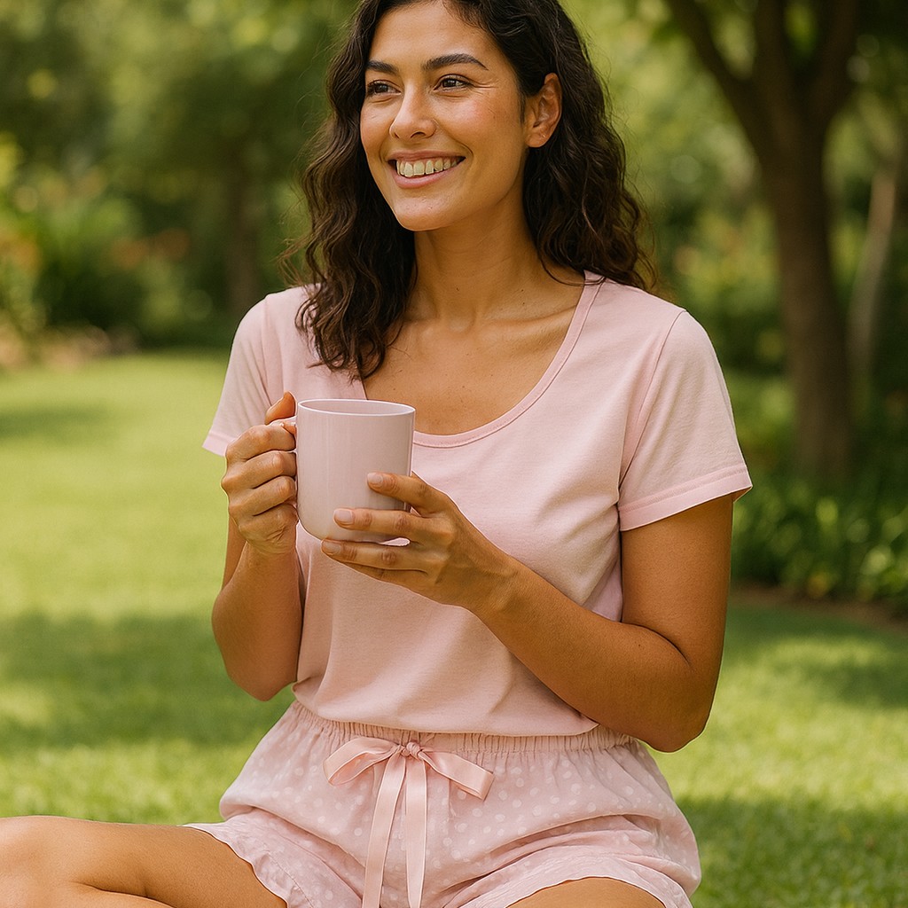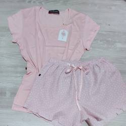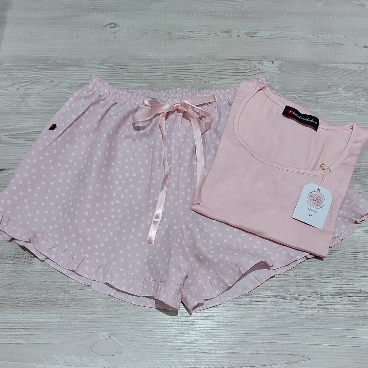 Conjunto de short con voladitos y remera minimanga. La tela del short es de tela de algodón (la tela no es elastizada). La tela de la remera es viscosa de algodón, una tela super suave, fresquita y muy agradable al tacto (la tela de la remera es bien elastizada)