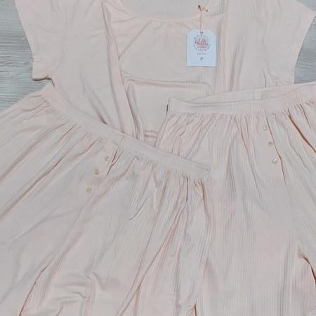 Conjunto de pijama masculino, short y remera mangas cortas. El short es de 100% algodón peinado, con bolsillos laterales, goma en la cintura y cordón de ajuste, bragueta con botoncito. La remera tiene cuello redondo con abertura de botones. La tela de la remera es de algodón y elastano; es elastizada.